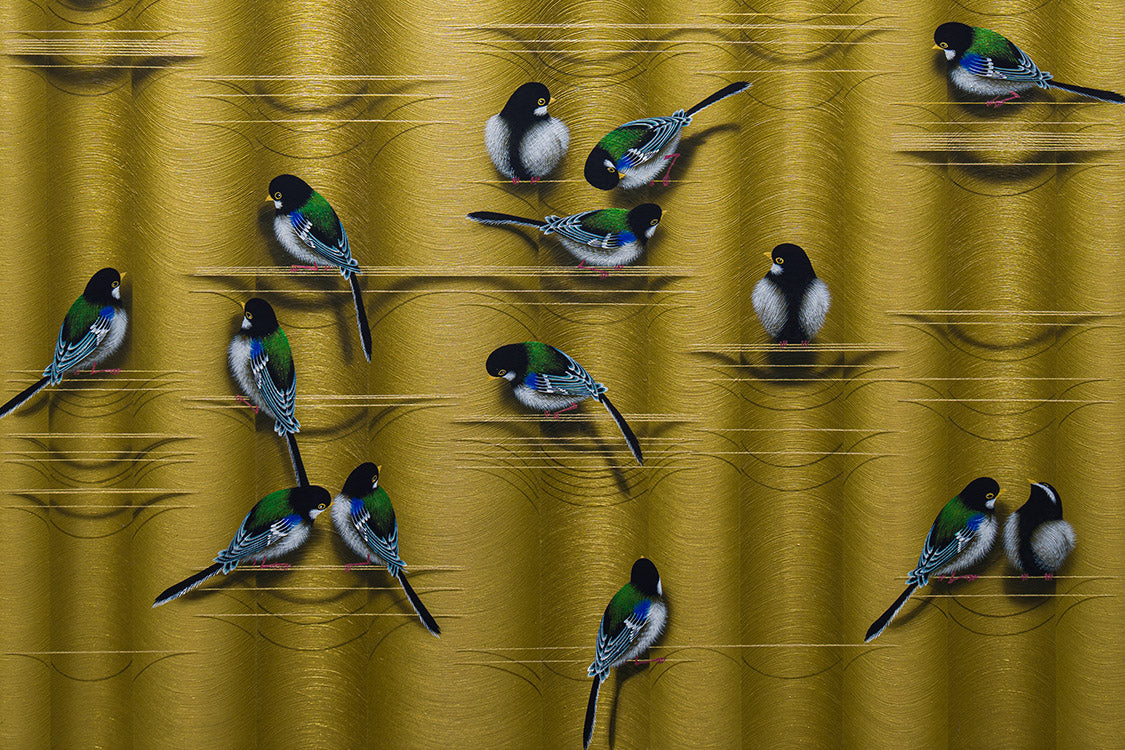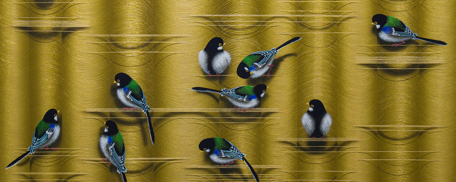 Jung Haiyun graduated from Seoul National University with a degree in traditional Korean painting. Her works explore themes of relationships and harmony through layered spatial arrangements, blending Eastern and Western techniques to create contemporary paintings. Her compositions, featuring freely arranged natural elements like birds, trees, landscapes, and human figures, focus on the formation of networks and the interplay between individuals. Jung has received notable attention domestically and internationally at art fairs and exhibitions. Her titmice carrying threads in their beaks, an artistic metaphor for human relationships, are rendered in fine detail, symbolizing innate human nature. Her work is celebrated for its refined completion and expressive depth, along with its insightful themes and unique, nuanced execution.