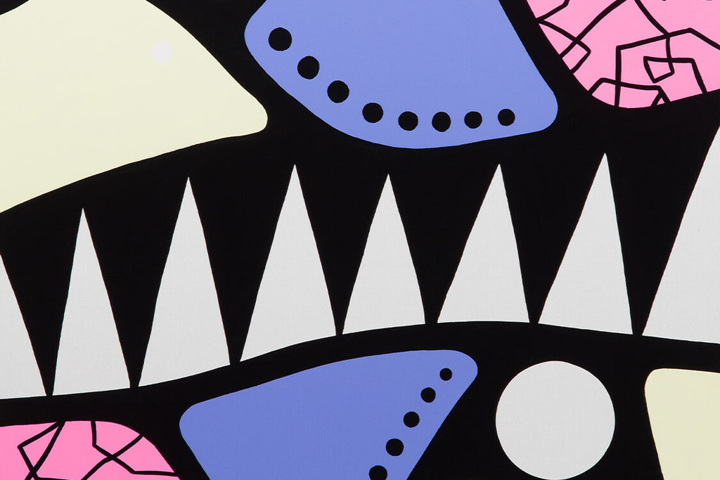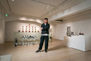 Ahhi Choi was born in Hyogo Prefecture Japan in 1983. The curvilinear movement in the work of Ahhi Choi is both buoyant and ecstatic, expressing the innate sense of adventure the artist possesses. He gained recognition after showing in New York in 2014 and has since exhibited internationally including in the United States, France, Italy, Korea, Singapore and Hong Kong. Choi’s work can be perceived as reflection of his subconscious mind. After studying in Los Angeles he traveled through the Western United States. During that trip, Choi explored the expansive network of National Parks, from Death Valley, the Grand Canyon to Yellowstone. It was during this stateside excursion that the artist developed an intimate bond with the grandeur and majesty of nature. Upon his return to his home city of Kobe, a malaise set in for Choi and it was the cramped and overcrowded lifestyle of urban Japan that was causing him to feel nostalgic. Taking the flashes of inspiration that the artist experienced in day-to-day life he began to take ink to paper forming an abstract diary of his adventures. Letting his hand move organically across the page, Choi would interpret the silhouettes, pictures, words and letters from the well of his memory into energetic lines that are ubiquitous in throughout his work. In addition to painting, the artist has also extensively engaged in other artistic creations, including the design of shoes, skateboards, fabrics, wine labels, cell phone cases, CD covers, and even musical instruments (didgeridoo). In 2020, dedicated his work “Naka-ima” (meaning “present time as a succession of the age of God, in Japanese mythology) to Ashiya Shrine and created votive pictures in collaboration with the shrine (sold out 200 editions immediately). He started also the creation of hanging scrolls in collaboration with a long-established Kyoto-style mounting brand “Kanouunkindou”.