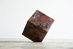 In his series titled Uncovered Cube, Manji presents seemingly identical cubes that subtly differ, each representing distinct facets of human nature. Through his art, Manji explores humanity and the essence of materials, transcending the conventional three-dimensional realm. By employing the consistent forging process of Mokume-gane, he examines the limitations of integrating multimedia elements and the coexistence of diverse human experiences. His art provides a platform for exploring various aspects of humanity from a unique perspective. He collects his observations and insights, which often challenge conventional notions, and compiles them into a personal notebook. This collection reflects contradictions and recurring thoughts about the essence of humanity.