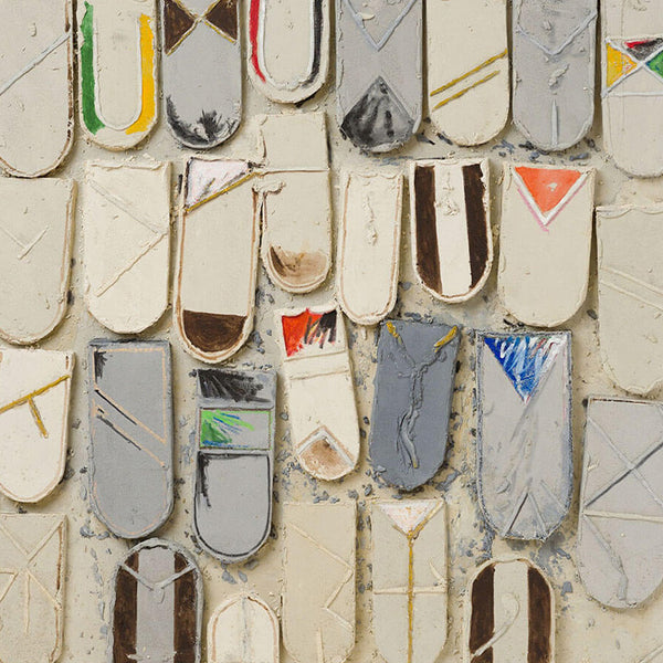 From 1961 to 1965, Isobe’s notable works primarily featured stone dust embellished with repetitive Wappen elements. His distinct Wappen characteristic, reminiscent of the prevalent Ivy Style in the 1950s, incorporated repeated literal symbols, fresco textures, and embossed structures. The combination of these elements complemented one another and captured global attention.