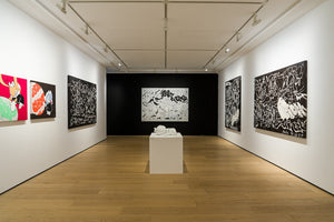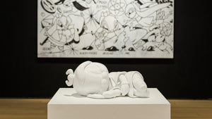 The exhibition showcases the captivating artistic realm of Aruta Soup, where social commentary and self-reflection converge. His work radically addresses the contradictions and psychological struggles of modern society. The artist's visual lexicon – the bandage-looking Rabbit character named ZERO, who frequently appears as wounded but reviving, represents both inner struggles and optimism within the peculiar worldview of the artist.