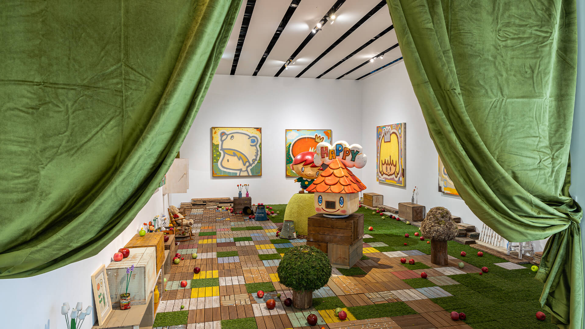In this exhibition, which marks the 20th anniversary of his career as an artist, Matthew will be the main character. The exhibition will feature his past works, which were created by composing motifs that symbolize "Happy" for Arikawa, such as apples, triangular-roofed houses, and birdsongs, as well as his new series which Matthew is walking, talking, and imagining freely and dynamically.