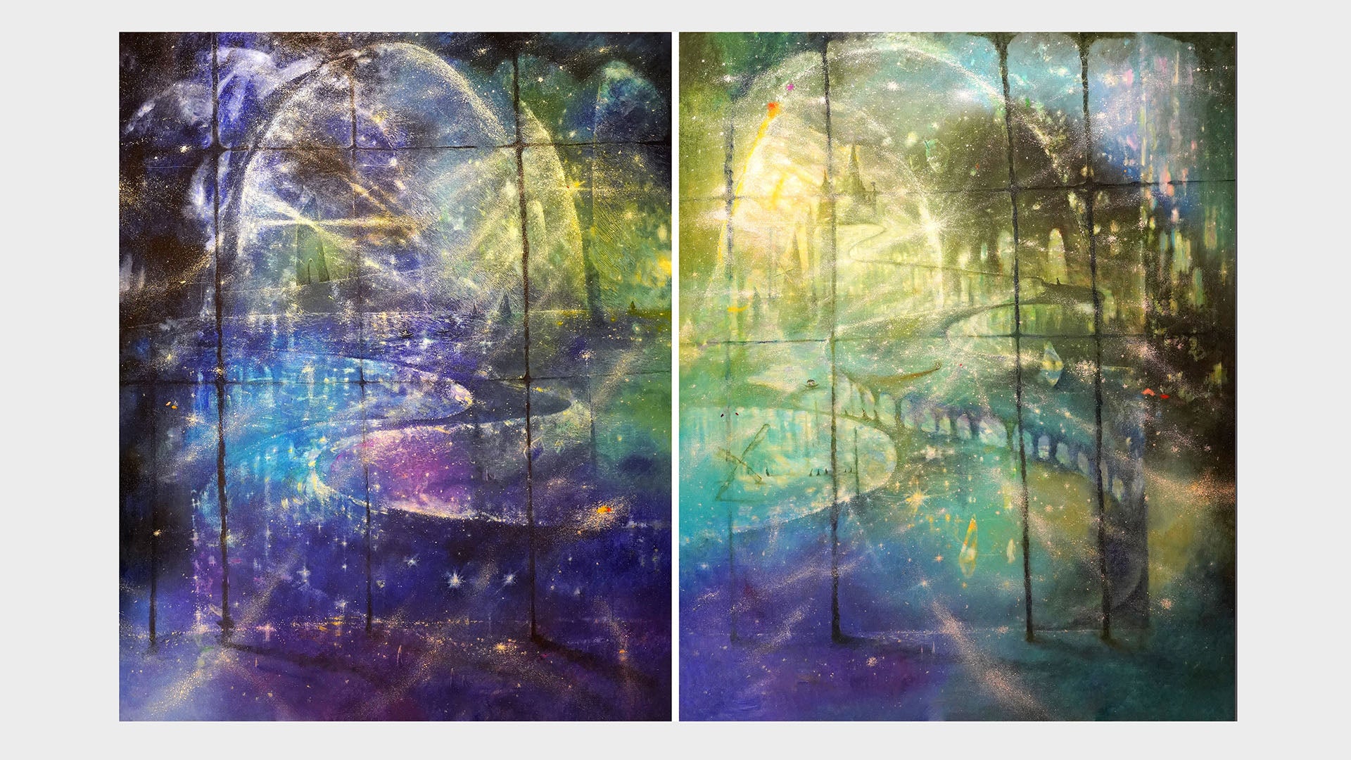 Karen Shiozawa “Voyage” 2025, Oil, acrylic, and alkyd resin on board, 162.0 x 130.3 cm (Each, a set of 2 pics)