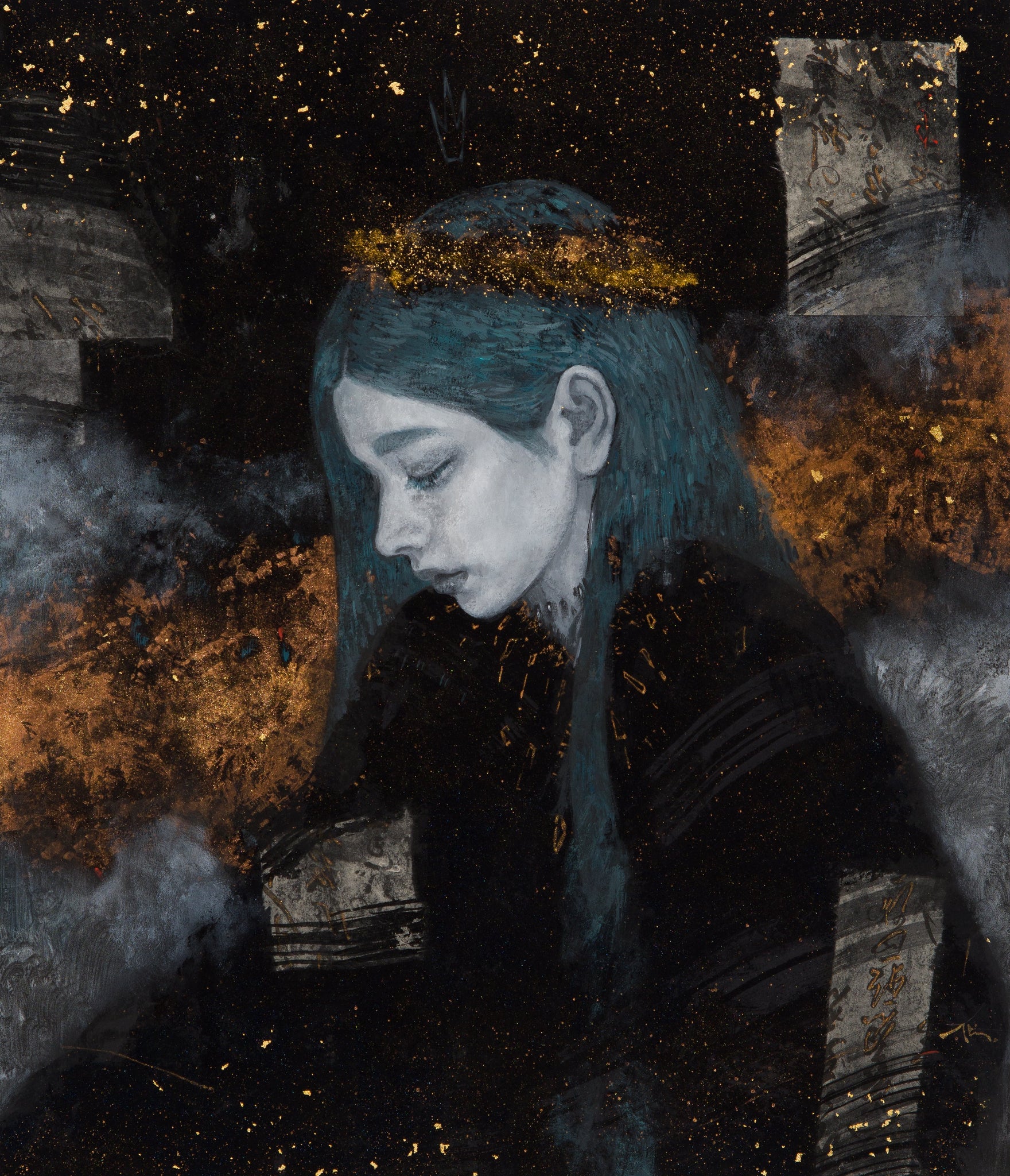 Natural mineral pigments,gold leaf