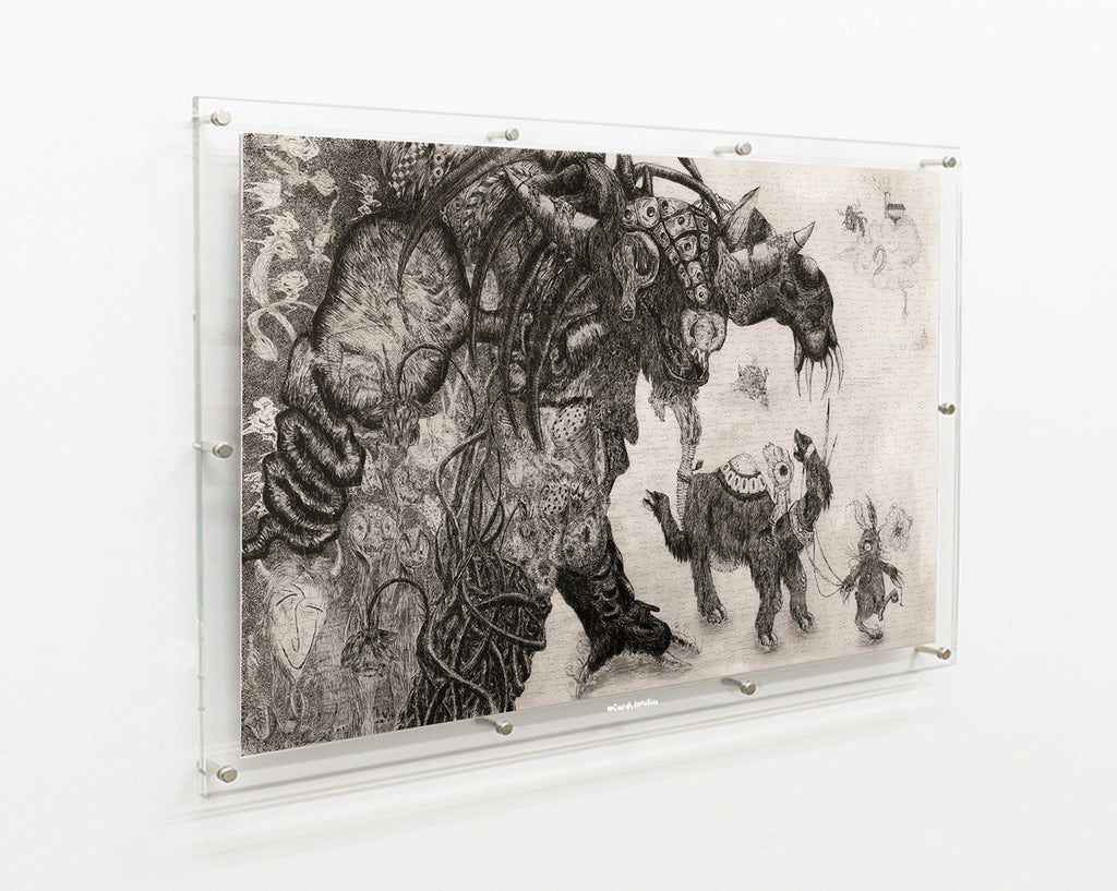 ジグソーパズルを2枚のアクリル板で挟み込むシンプルな2層構造で、組み立てたパズルをアクリル板で挟むだけで、パズルの額装が簡単に行える。表面には反射を抑える低反射仕様が施されており、パズル本体の絵柄がより綺麗に見える設計となっている。