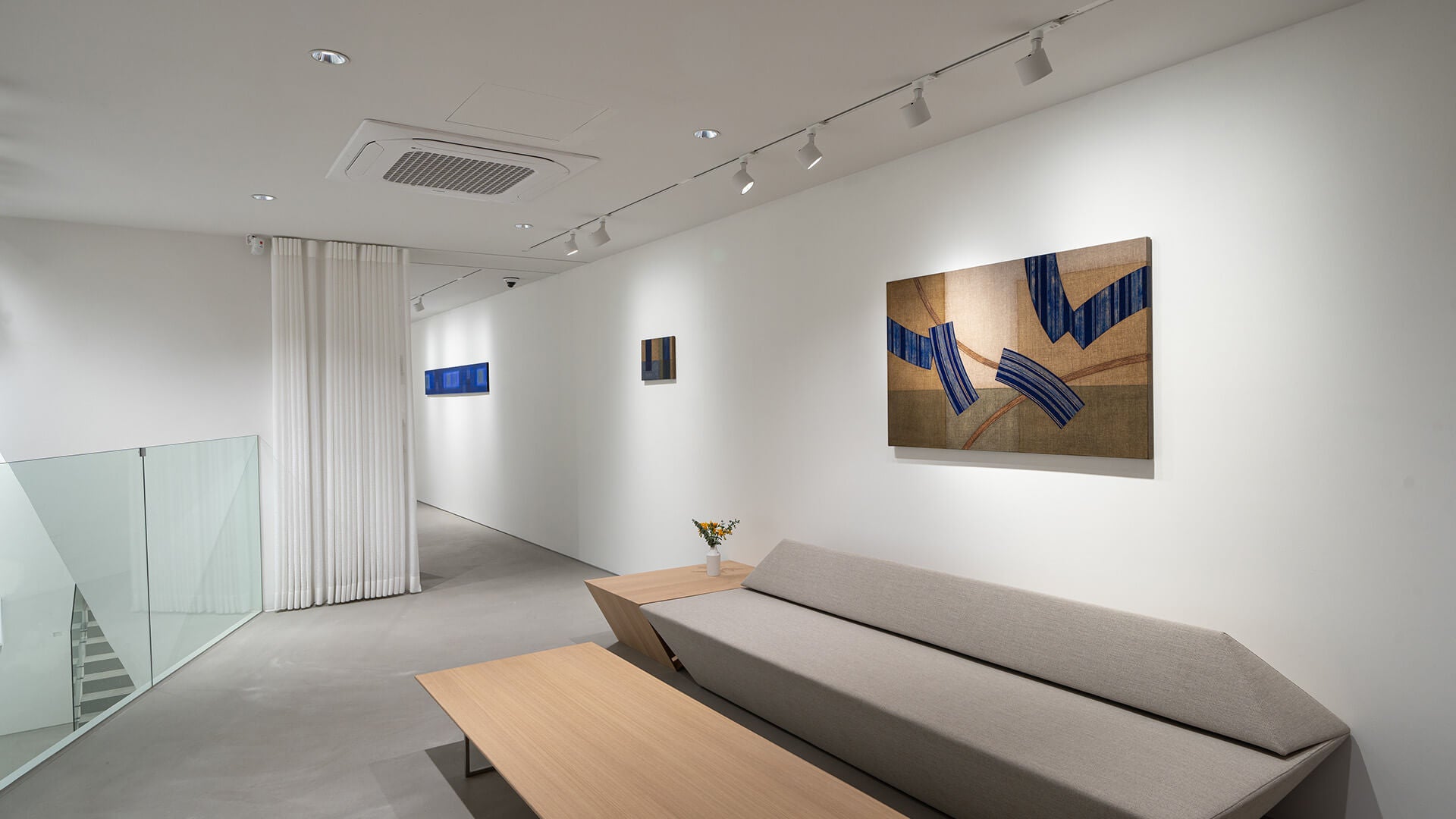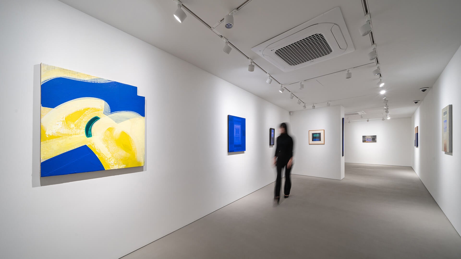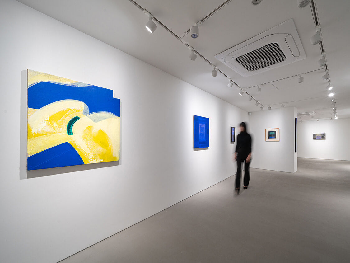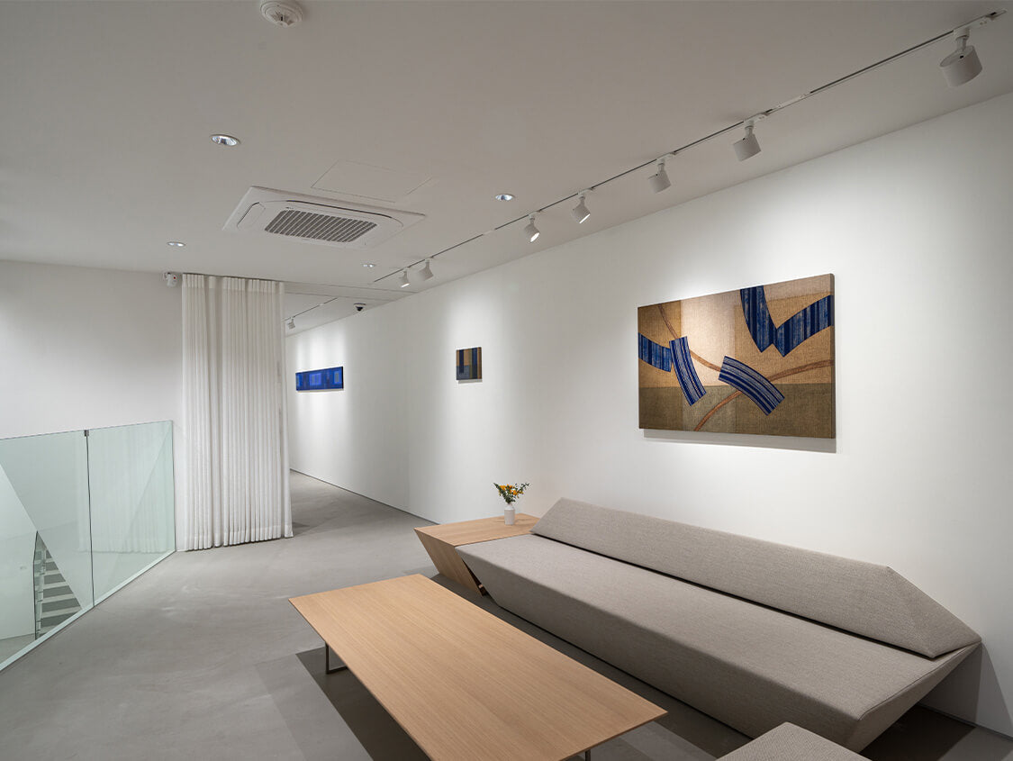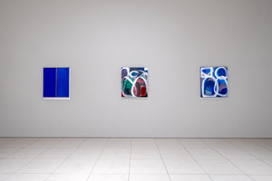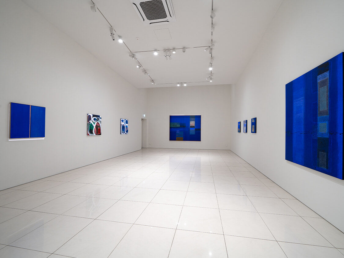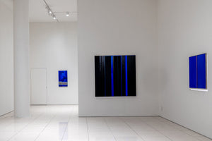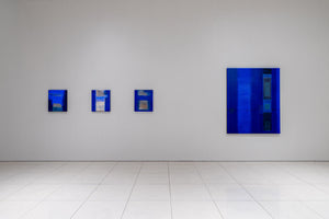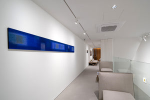 1951년 일본에서 태어난 이노쿠마 카츠요시는 1993년경부터 그의 대표적인 IN BLUE 시리즈를 발표하고 현재까지 열심히 제작을 이어가고 있다. 이 시리즈는 고요하고 부드러운 푸른 화면이 분할되어 그려지며, 몇 개의 직사각형이 삽입되어 구성되는 것이 특징이다. 화려한 색감이나 드리핑이 섞인 초기의 IN BLUE 시리즈 속 장식적인 표현과 대조적으로, 최근 작품들은 주로 조용하고 어두운 색상을 사용해 심미적인 깊이를 느끼게 하는 공간을 그려내고 있다. 이 시리즈의 대표적인 색상인 울트라마린 블루가 작품 전체를 뒤덮고 있는 듯 보이지만 작가는 푸른 색의 미묘한 변화를 주어 색에 깊이를 부여하고, 부분적으로 커피가루를 안료와 섞어 작가만의 독특한 질감을 화면에 표현해 낸다. 작가에게 있어 푸른색은 공간의 깊이를 가장 잘 느끼게 해 줄 수 있는 색상이기 때문에 바다의 심연을 연상케 하는 자신만의 독특한 푸른색을 일관되게 사용하여 작품을 제작한다.