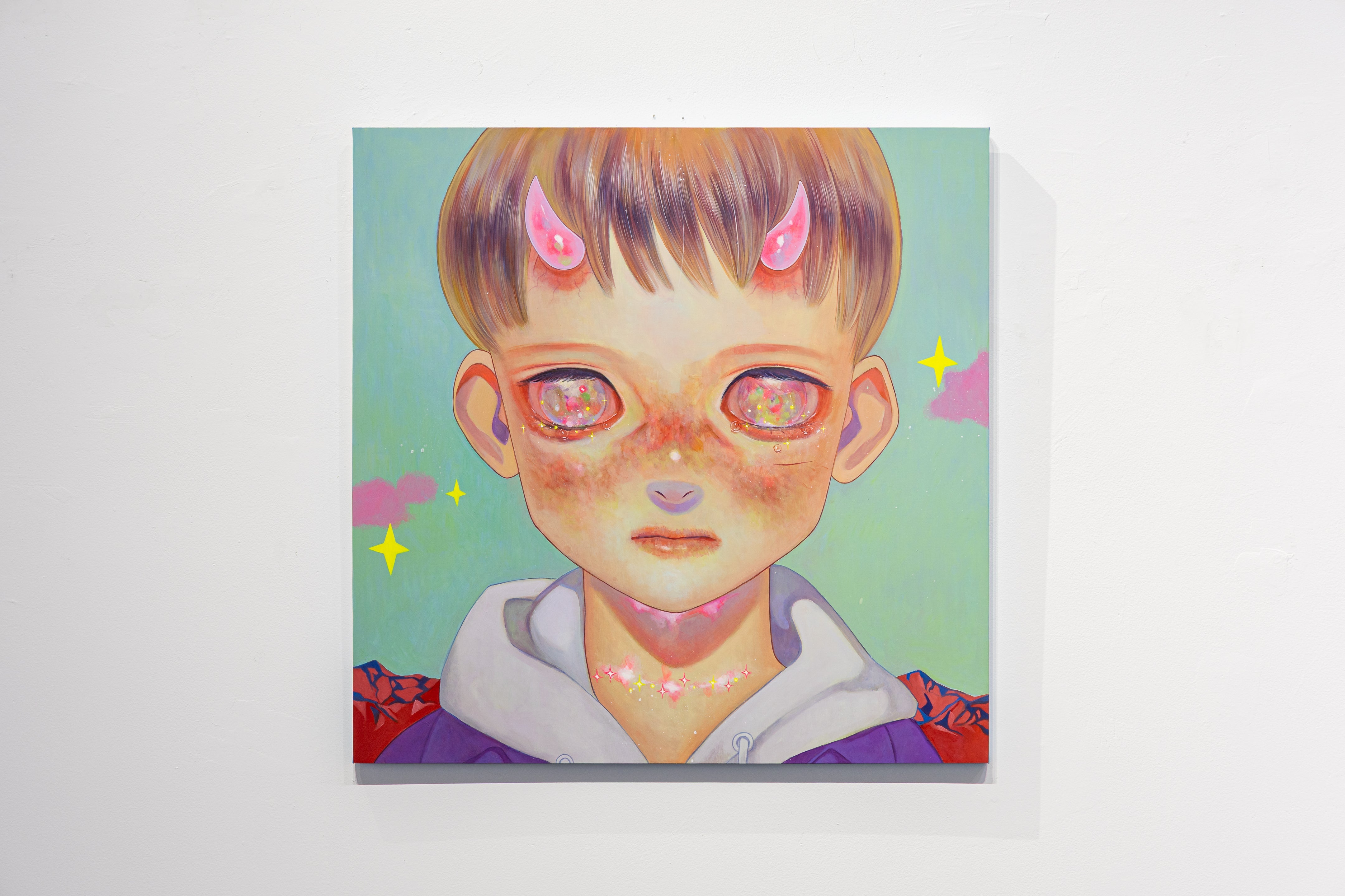 Acrylic, Oil on canvas with cotton cloth