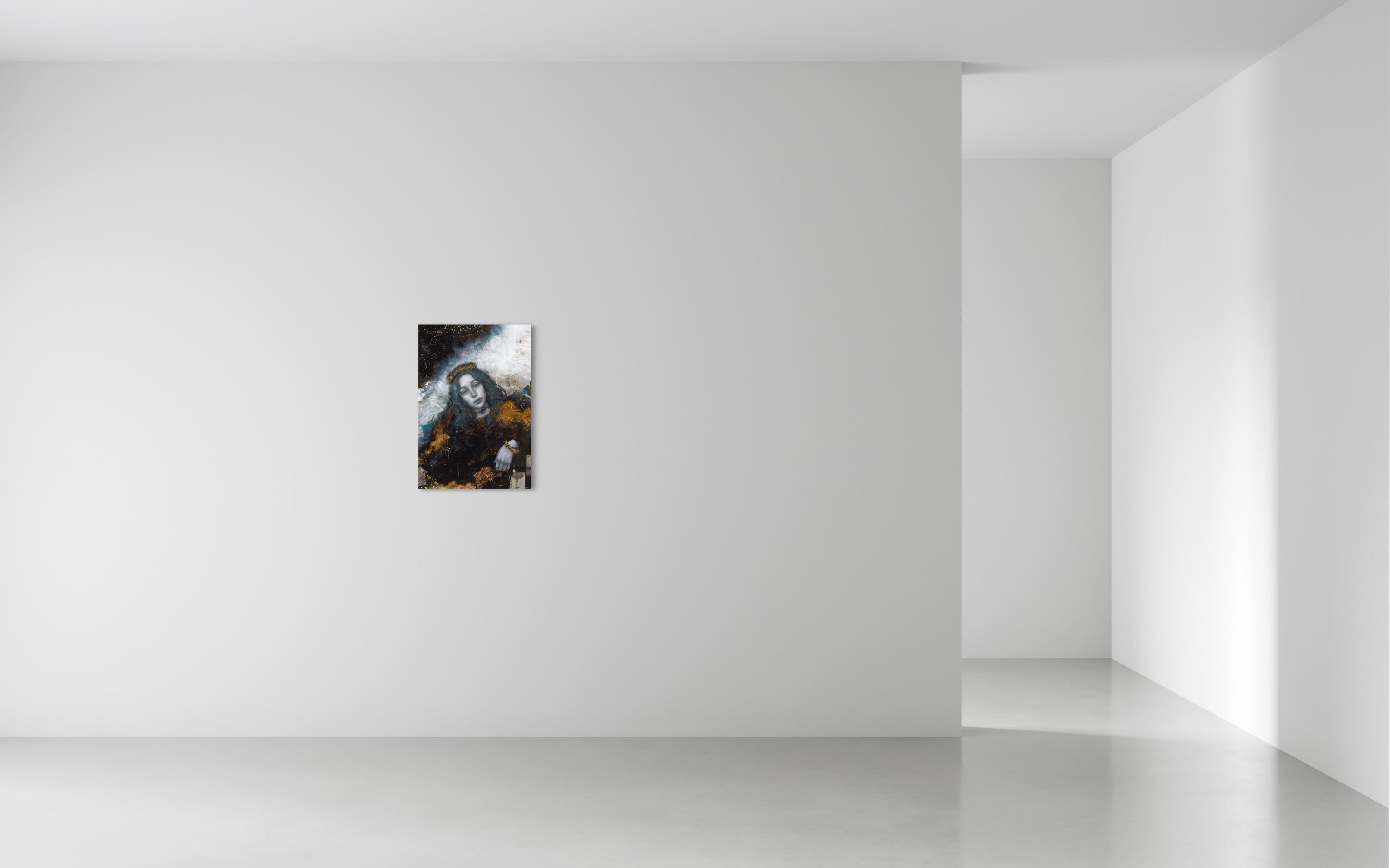 Panel, acrylic,natural mineral pigments,gold leaf,old documents (1870 )