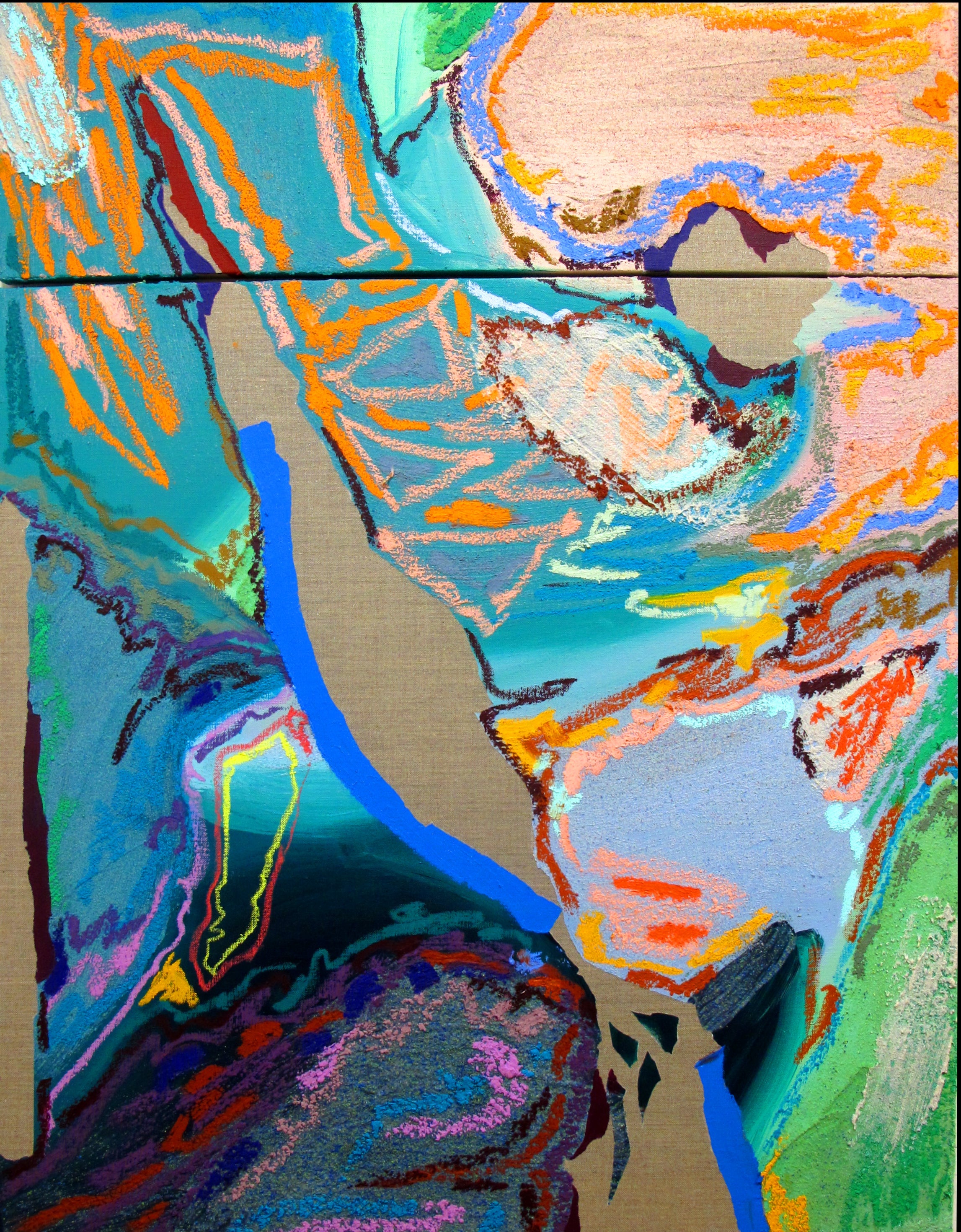 Acrylic, Oil, and sand on canvas