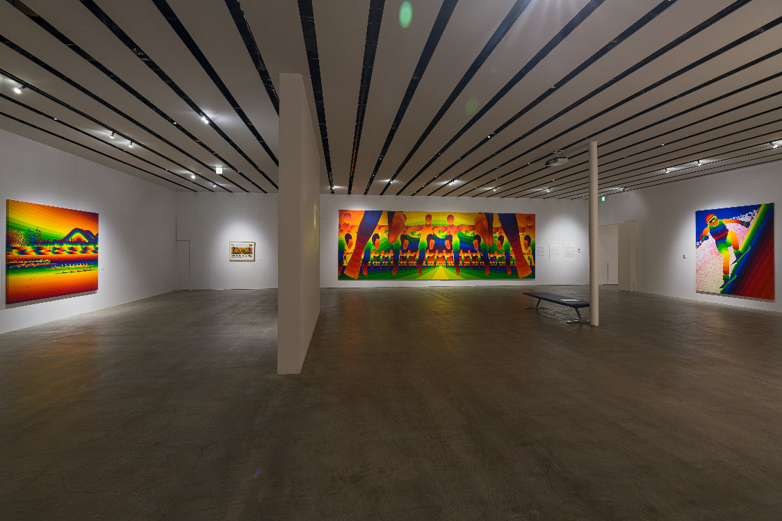 靉嘔《オリンピック 100m 男子》1992年、130.0 × 162.0cm、アクリル・カンヴァス