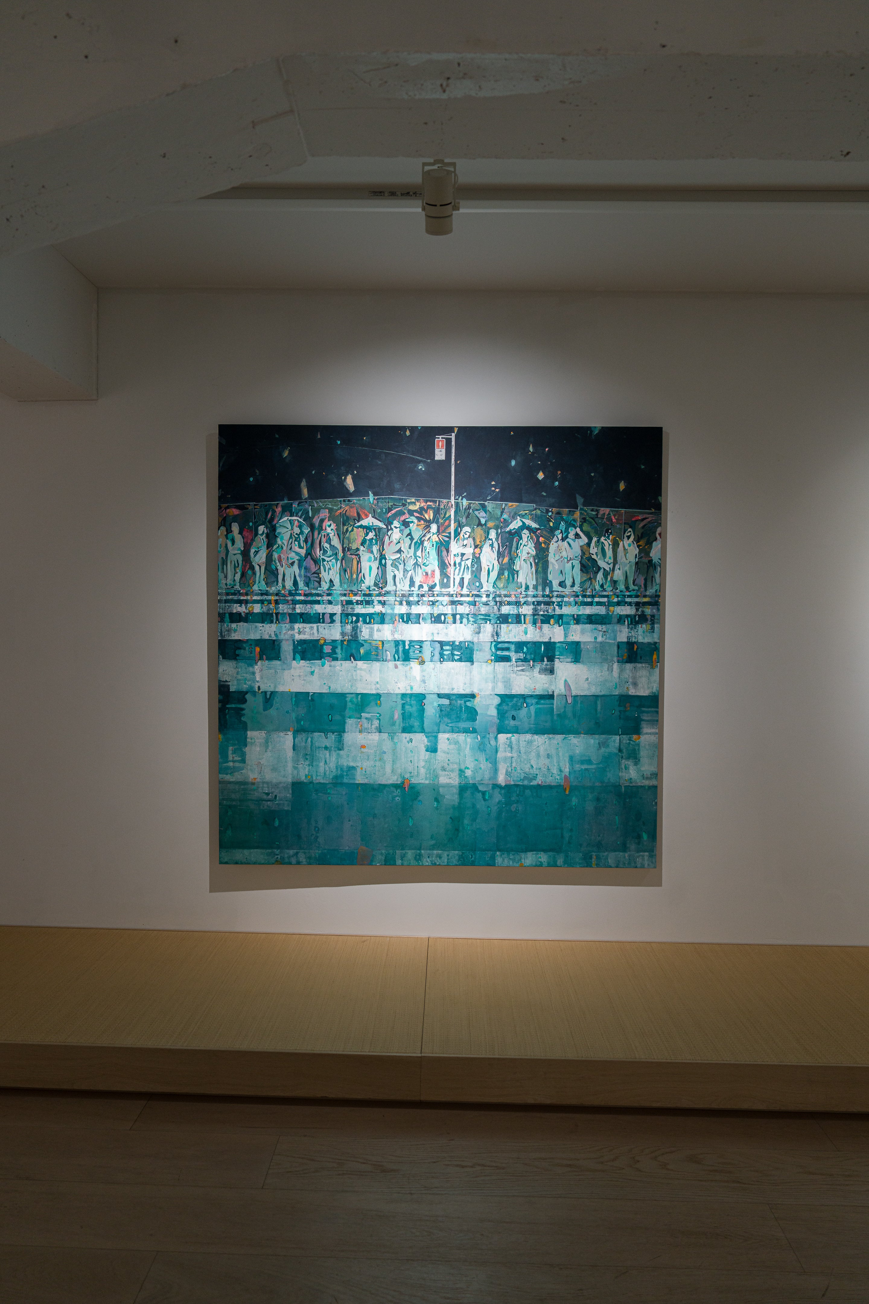 Mineral pigments, Ink, Silver leaf on Japanese paper mounted on wooden board