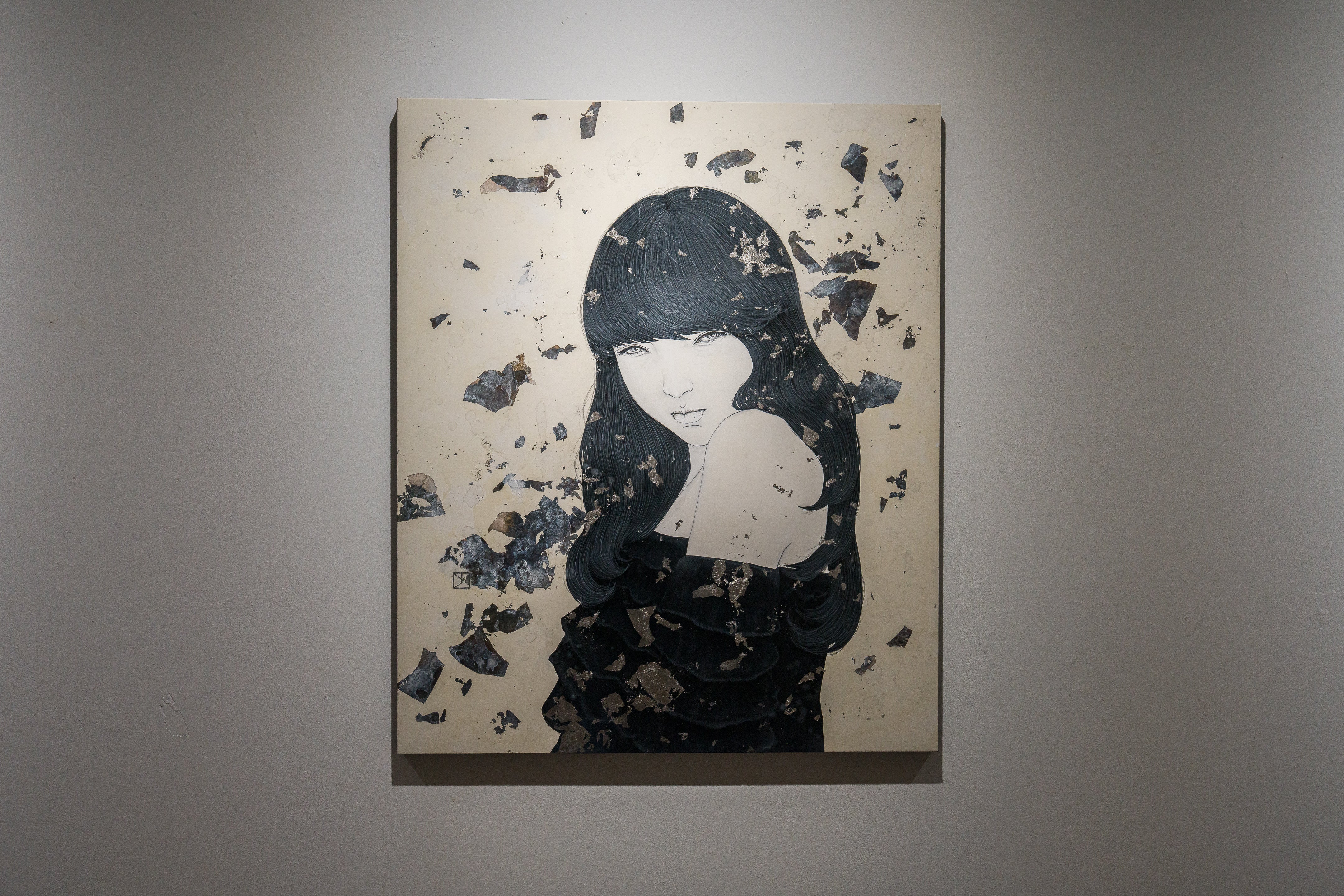 Ink, Gofun, Mineral pigments, Platinum and silver leaf on hemp paper
